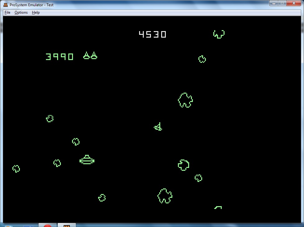 Dig Dug for the 7800 was one of the release titles for the system and is the ‘premier’ version for 8-bit Atari consoles. The sprites for all of the characters are rendered in multi-color, there is a cool start screen, and the sound (usually a short coming for the 7800) is well done. The NES version may have slightly sharper graphics, but the 7800 version is that hands down winner for Atari console versions. All of the arcade elements and scoring are present and it is a blast to play. If you have a 7800, this game is a must have for your collection!